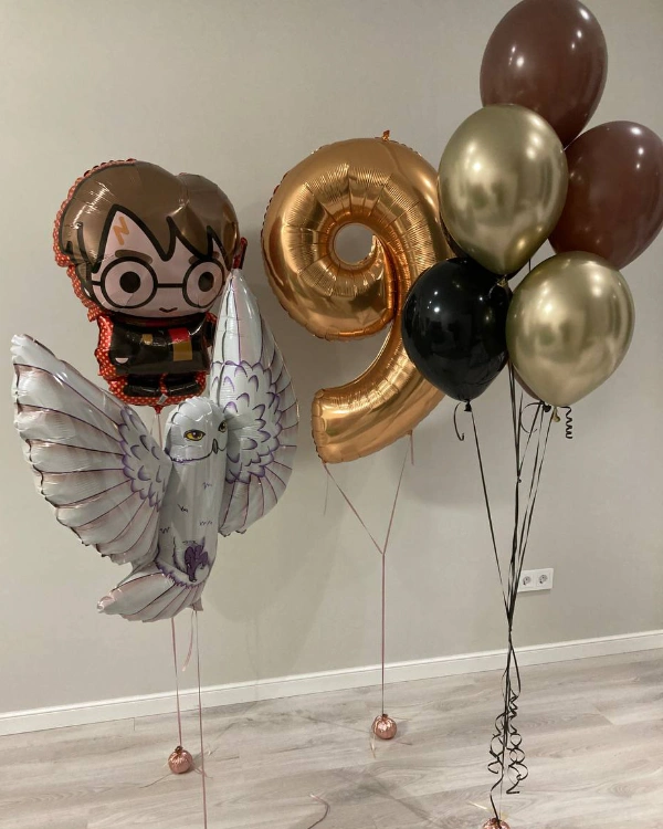 Если вы хотите создать настоящую атмосферу волшебства, тематика Гарри Поттера — идеальный выбор. Шары с героями любимой франшизы легко заказать, и они сразу станут главным украшением праздника.