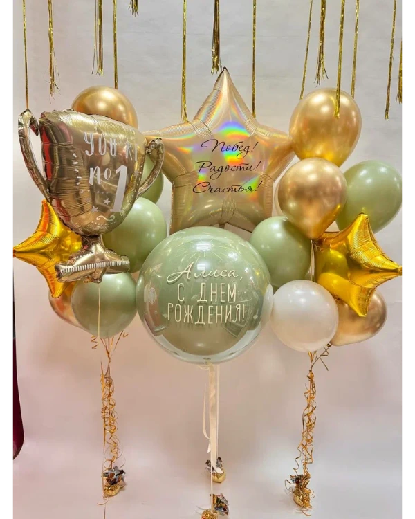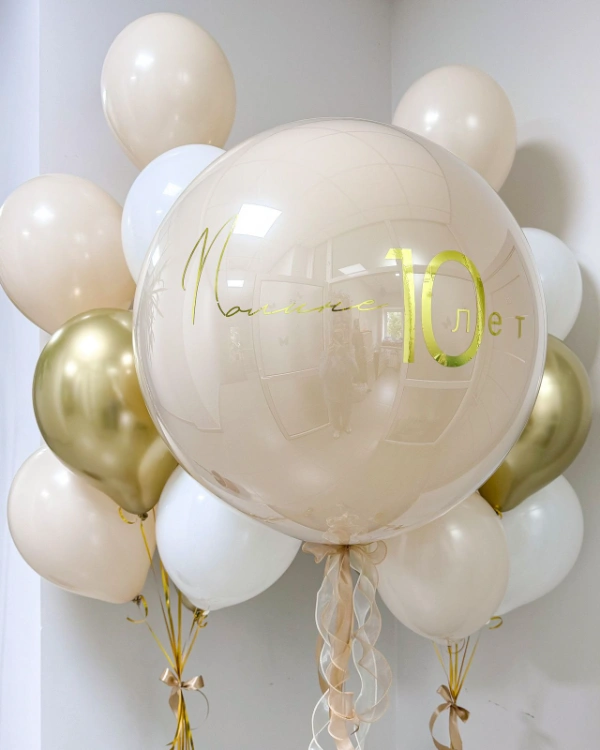 Вы можете выбрать готовый вариант или заказать шар внутри шара с индивидуальной надписью, декоративными элементами и наполнением под конкретное событие.
