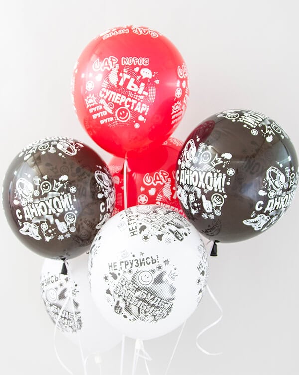 Воздушные шары из натурального латекса с шелкографическим рисунком тематических дизайнов станут идеальным украшением праздничного торжества, а букет из воздушных шаров поднимет настроение в любое время года.
